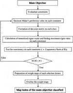 After this stage it is possible to construct the normalized maps for each indicator-criterion, apply the AHP to the criteria maps and finally obtain the index map of the main classified objective.
