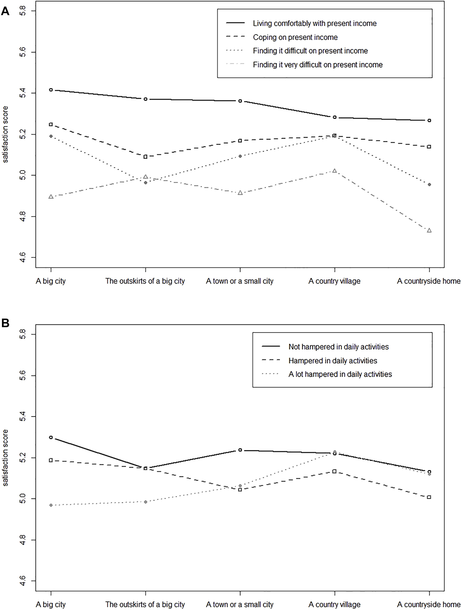 For area of residence, the inhabitants of big cities and small cities were less satisfied on average than were people living in other areas.