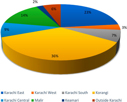 District-wise distribution of the patients (Karachi, Pakistan. 2021).