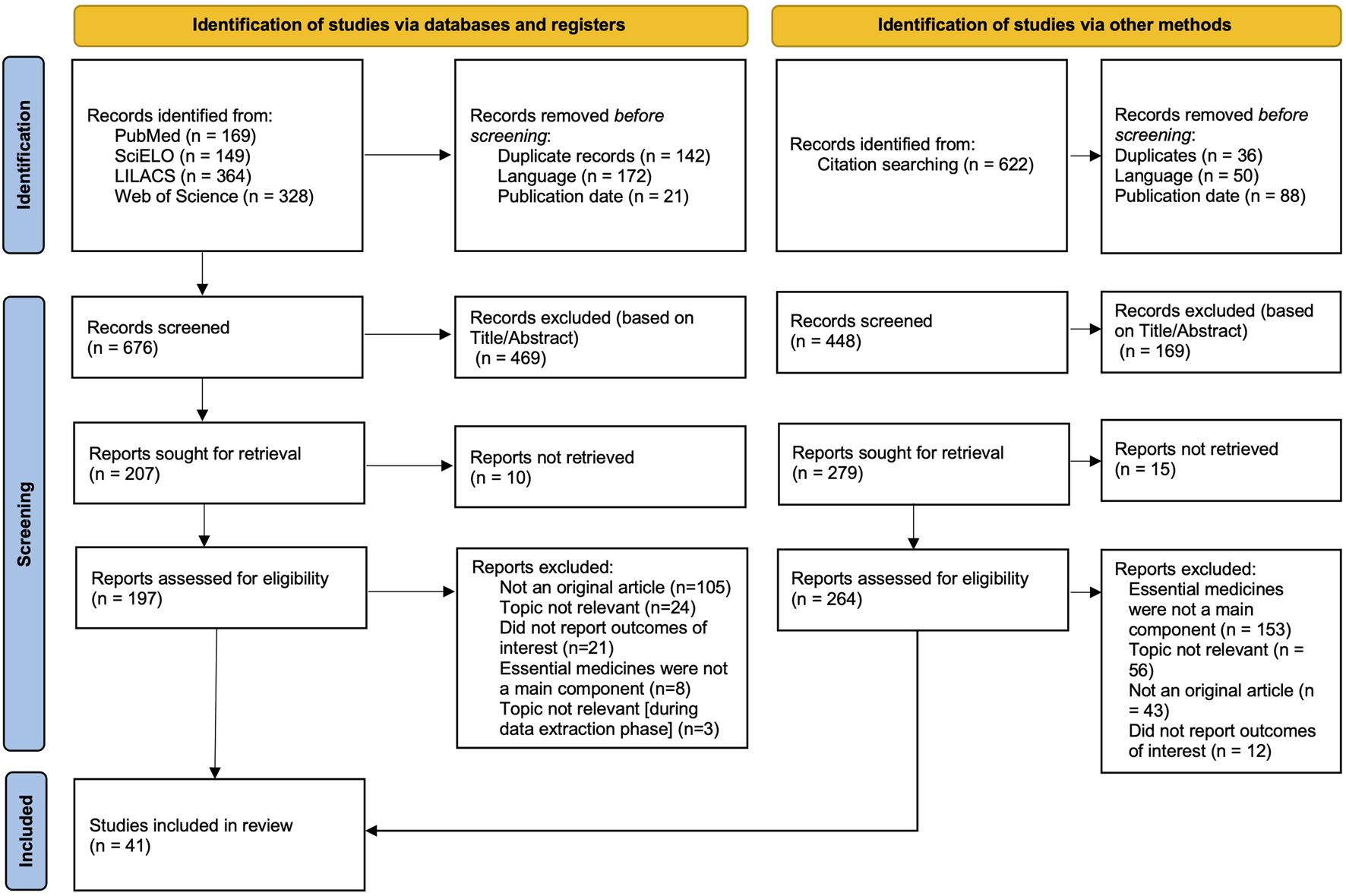 We excluded papers that were not original research studies, such as commentaries, editorials, correspondences, letters to the editor, essays, short articles, and preprint articles. We excluded studies focused solely on high-income countries or those where it was unclear whether they provided information on access to medicines in LMICs. Additionally, studies were excluded if essential drugs were not a primary focus or if they did not report outcomes related to access to essential medicines. Text that could not be retrieved through conventional methods was also excluded.