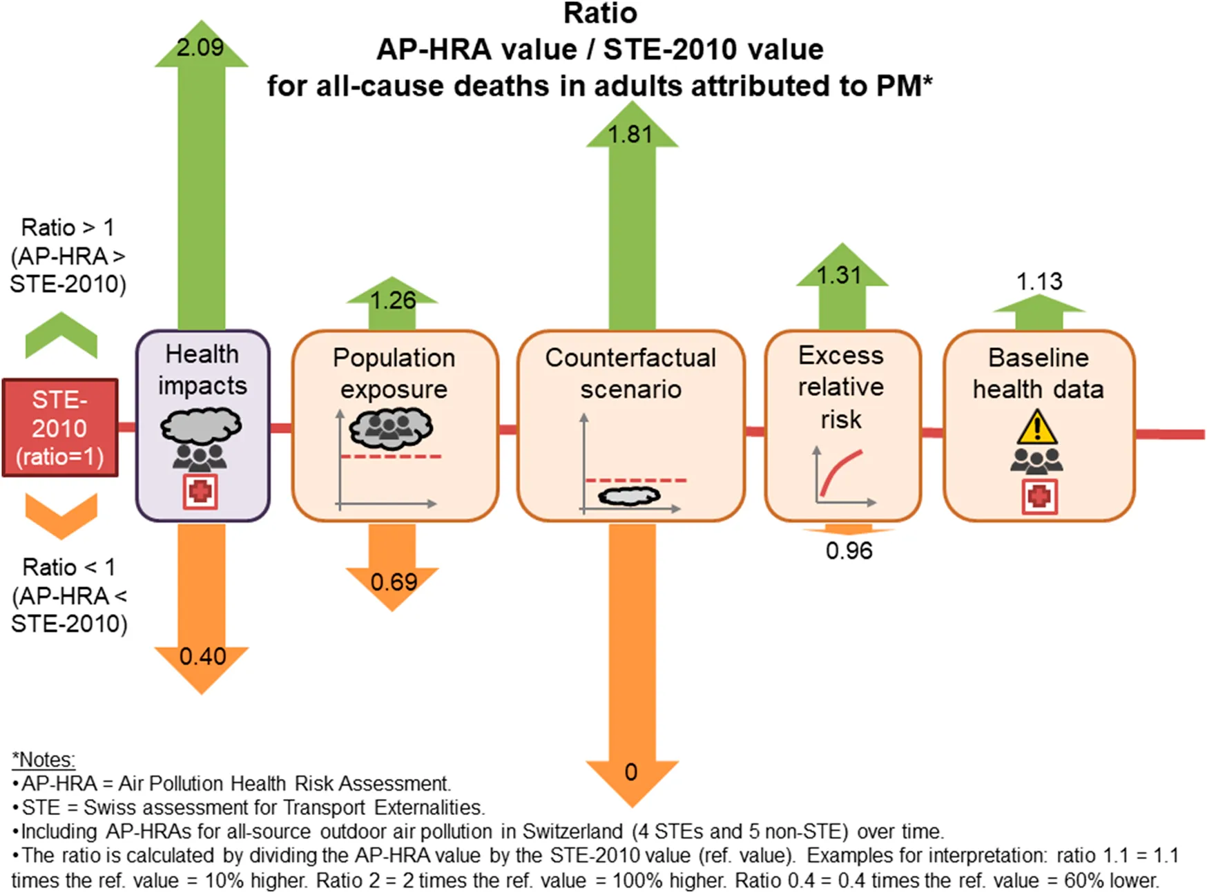 Castro A, Röösli M, de Hoogh K, Kappeler R, Kutlar Joss M, Vienneau D and Künzli N (2022) Methods Matter: A Comparative Review of Health Risk Assessments for Ambient Air Pollution in Switzerland. Public Health Rev 43:1604431. doi: 10.3389/phrs.2022.1604431