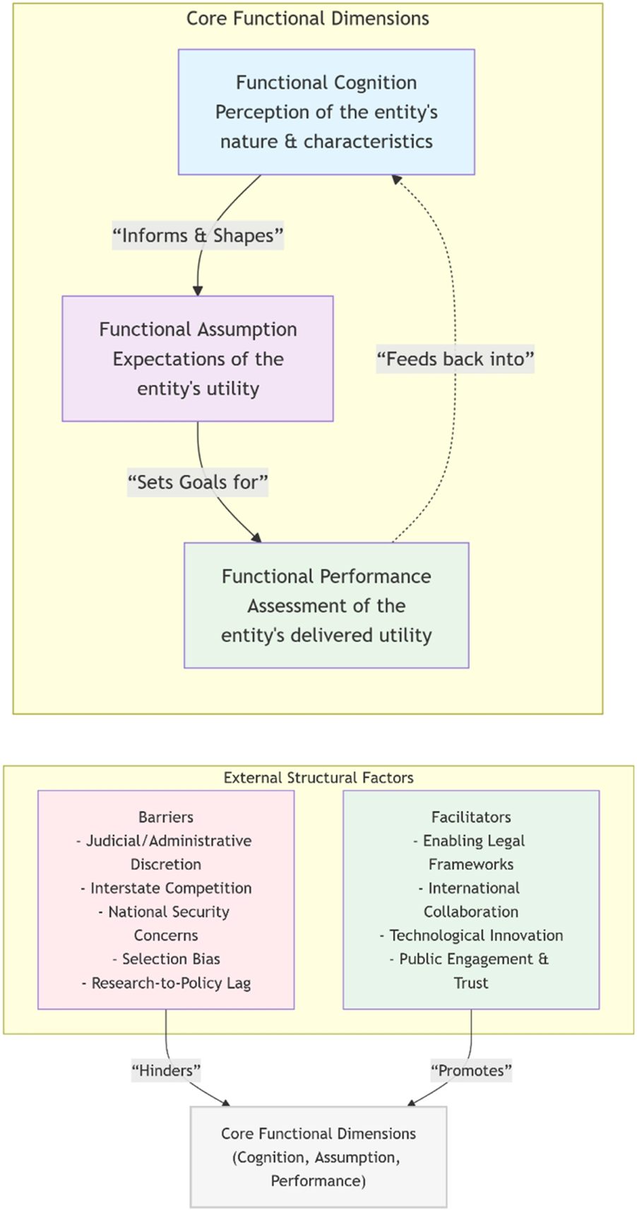 In addition to these three functional dimensions, structural factors critically shape the evolution of the UK Biobank. Judicial and administrative discretion directly affects the terms of data-sharing and the viability of cross-border collaborations. Meanwhile, inter-state competition creates both external pressures and incentives for institutional innovation. National security concerns over sensitive genetic information further complicate regulatory approaches, underscoring the intersection of science, law, and geopolitics in the governance of biobanks [33]. The relationship of core functional dimensions and external structural factors have been illustrated in Figure 1.